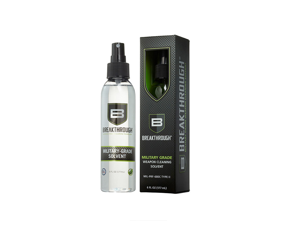 Breakthrough® Military-Grade Solvent Tämä liuotin poistaa nopeasti ruuti- ja lyijyjäämät sekä muun kuonan ja lian, ja haihtuu ilman raitoja tai saostumia.